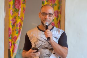 Natural de Cubatão e moradora de Salto há quatro anos, Daniele é mãe de Cadu e Laura. Sua relação com a Casa da Memória Negra de Salto e o Sarau Café com Pretos vem da busca por reconectar sua família com a ancestralidade africana. Acredita que o sarau é um espaço essencial para compartilhar histórias e experiências de forma positiva e enriquecedora.